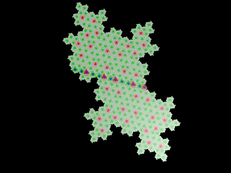 A long slightly decreasing sequence of aligned H7 and H8 clusters running from left to right is highlighted in the images.