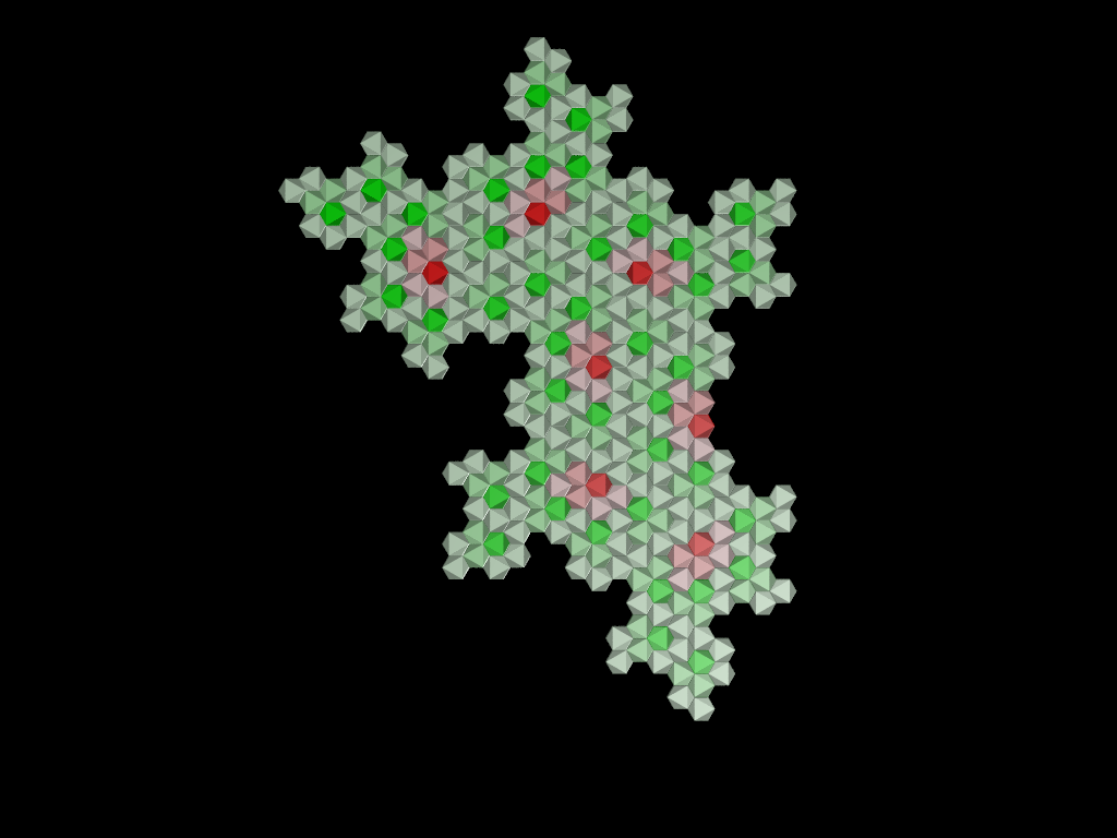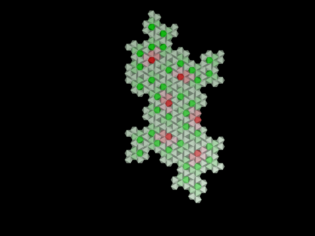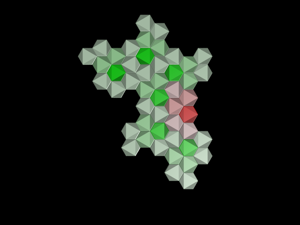 A long slightly decreasing sequence of aligned hexH7 and hexH8 clusters running from left to right is highlighted in the images.