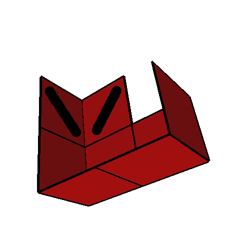 - Open in 3D by hinging the central and southern tiles about a vertical (west