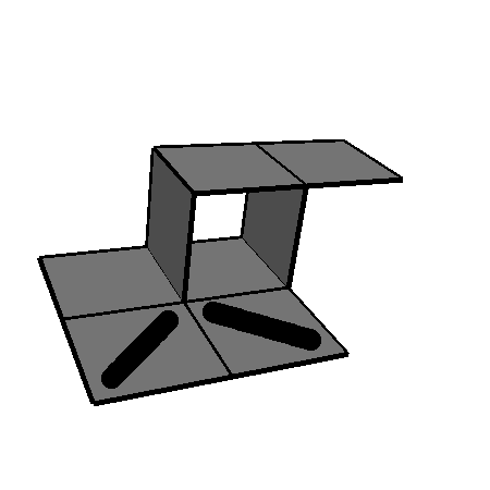 flat configuration in the shape of a 4x1 rectangle with a single (flap) tile in the north