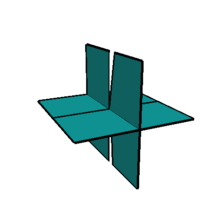 - Flatten into a 2x2 square with four pairs of superposed tiles