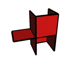 - another tile becomes a flap and can be turned down 180 degrees. We get to the cubechair shape above.