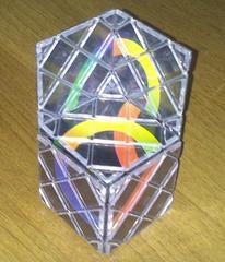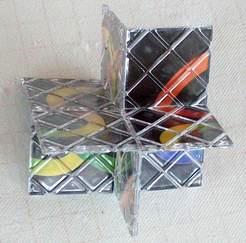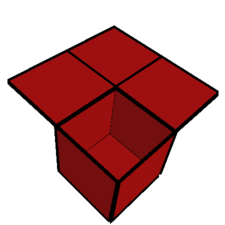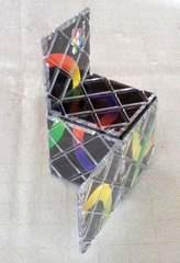 - push the same flap further inside the cube 90 degrees against the upper tile of the cube, which becomes a flap.