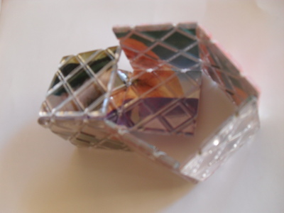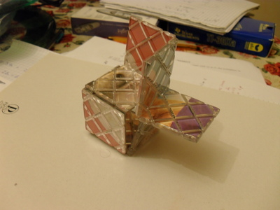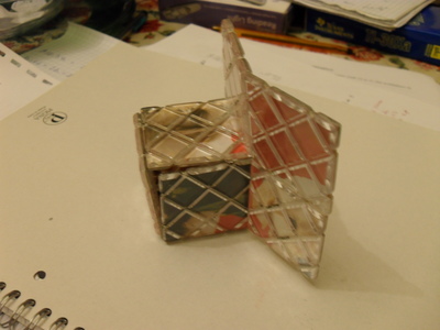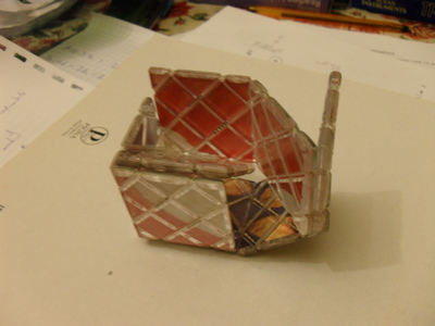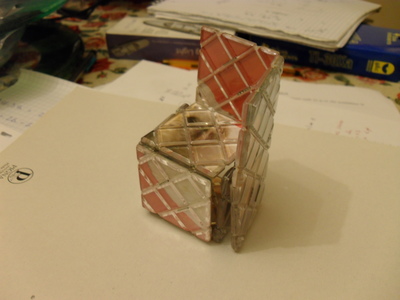 Start from the flat shape S-1 and open it into to be oriented such that the two front lower tiles are of slash type (left) and backslash type (right). From there we can obtain the first configuration below...
