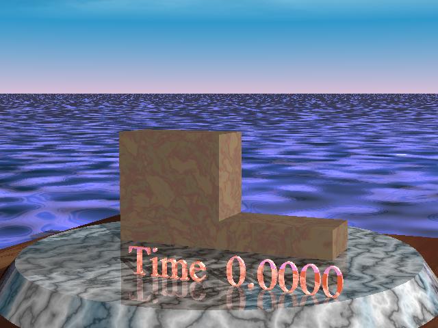 Crystalline surface evolving by mean curvature under a cubic anisotropy. The Wulff shape describing the anisotropy is the cube of side 2 centered at the origin.