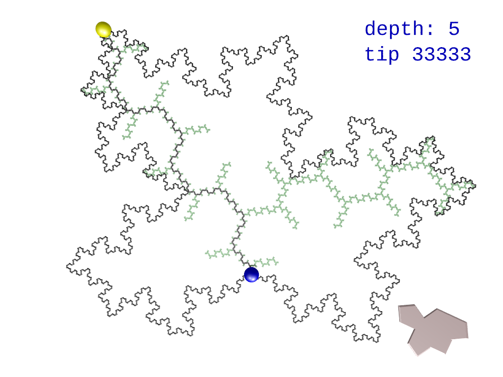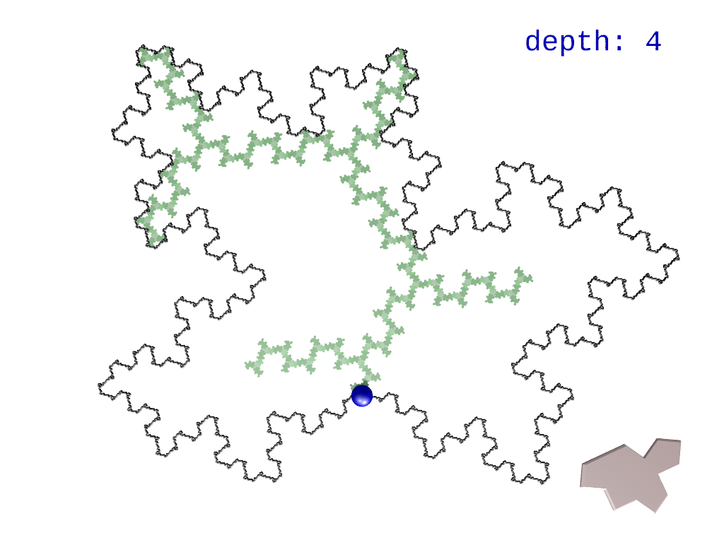 Observe that only at odd depths this worm walks through the center (address "[40]." or "[04]." where the tripod observed by